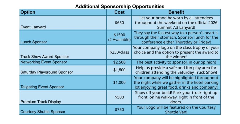 Sponsors play a key role in shaping the experience, engaging directly with shop owners, manufactures and performance professionals who drive this market. It’s an opportunity to build real relationships, boost brand trust and be part of something that strengthens the industry as a whole.